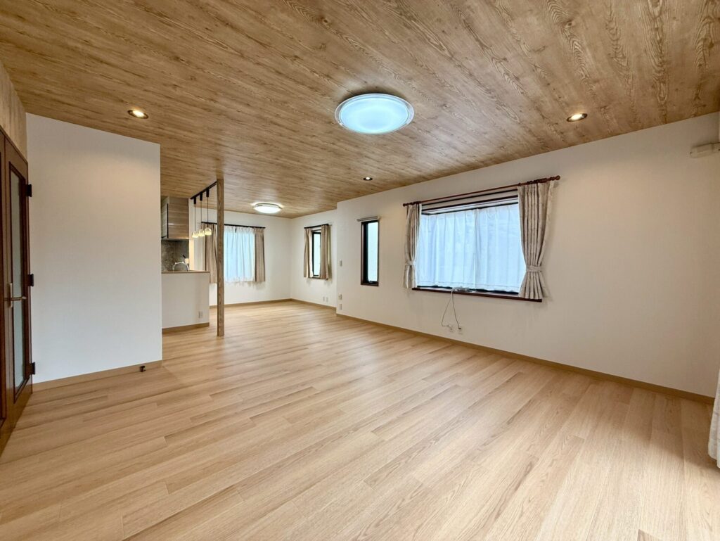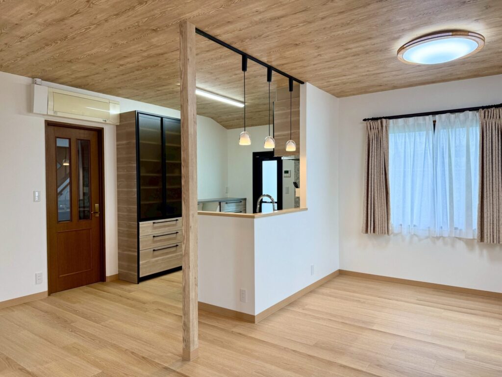 壁は清潔感のある白いクロスに張り替え、天井には木目調クロスを採用。